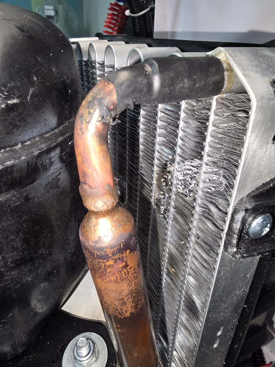 1-2 минутНа первом фото не защитили алюминиевые радиатор и случайно «коснулись» его пламенем горелки. На втором — запаянные соединения. Фильтр заменён на фильтр-осушитель.